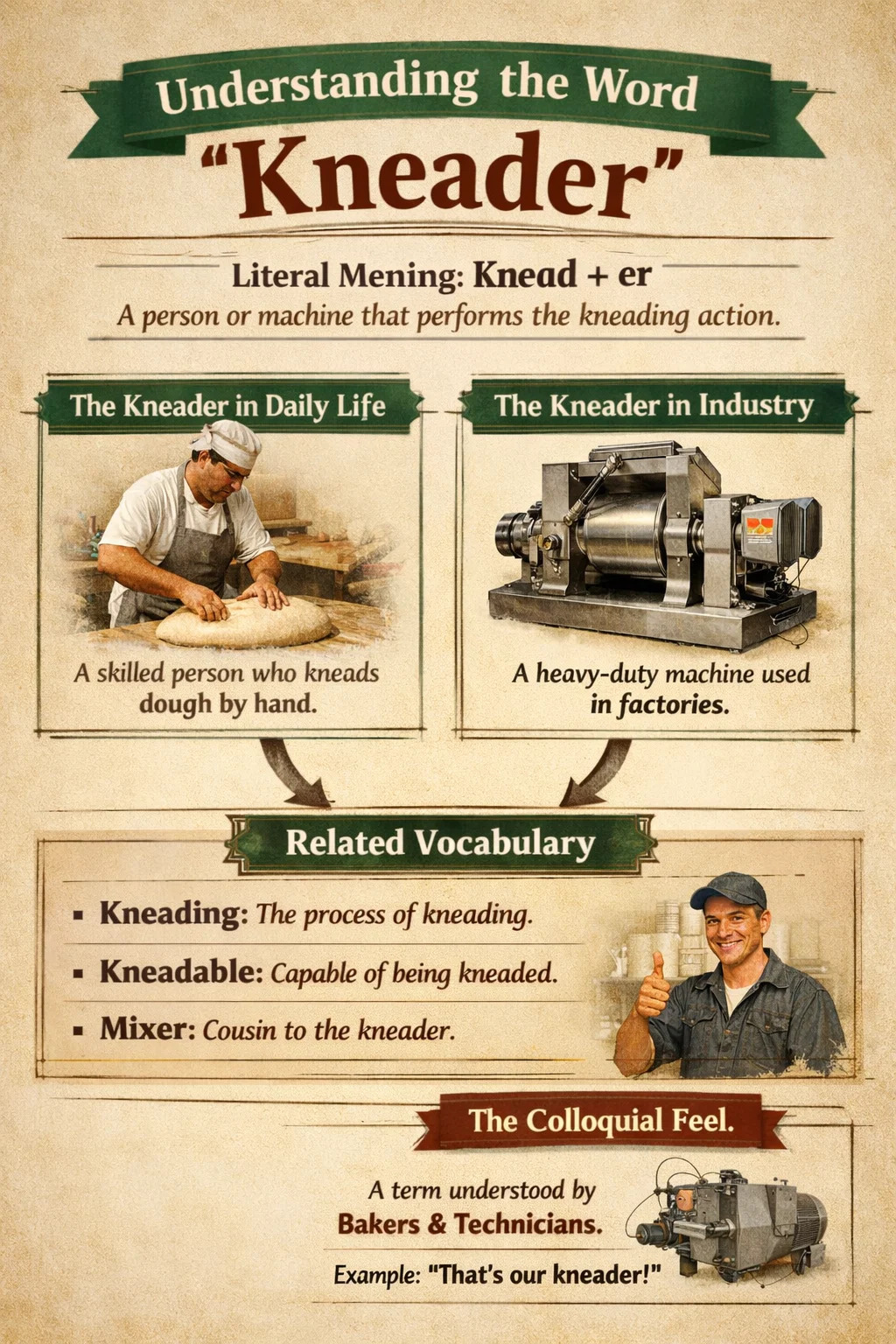 Therefore, the original meaning of kneader is: a person or machine that performs the kneading action.